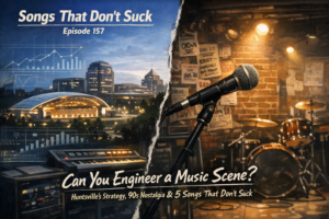 Can a city engineer a music scene? This week on Songs That Don’t Suck, Mark dives into Huntsville’s music strategy, questions whether scenes can be optimized, and spotlights killer new tracks from Hollerado, Leith, Big Big Train, Crooked Fingers, and The Other End.