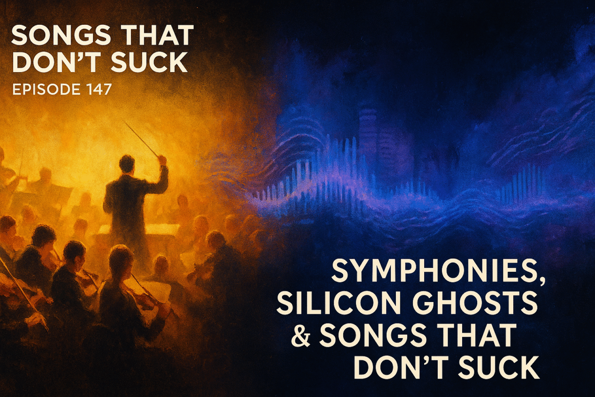 This week’s episode swings hard between the sublime beauty of classical music and the unnerving rise of AI-generated tracks flooding modern streaming platforms. But don’t worry — we’re ending with four incredible human-created songs that absolutely do not suck.